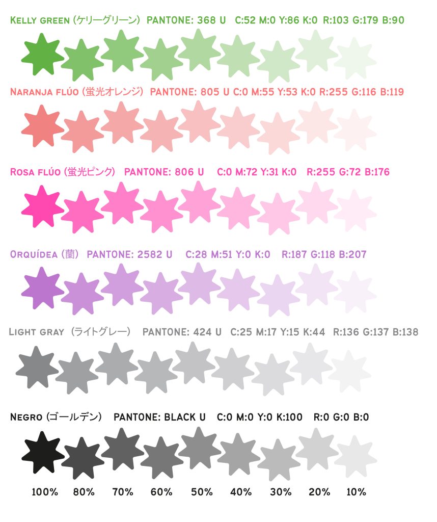 Por el momento nosotros contamos con 12 tintas Riso. Estos son colores muy vivos y a la vez traslúcidos, lo que quiere decir es que si se sobrepone un color sobre otro se mezclan y generan nuevos tonos, un efecto muy recomendado para probar al máximo la técnica de la Risografía.